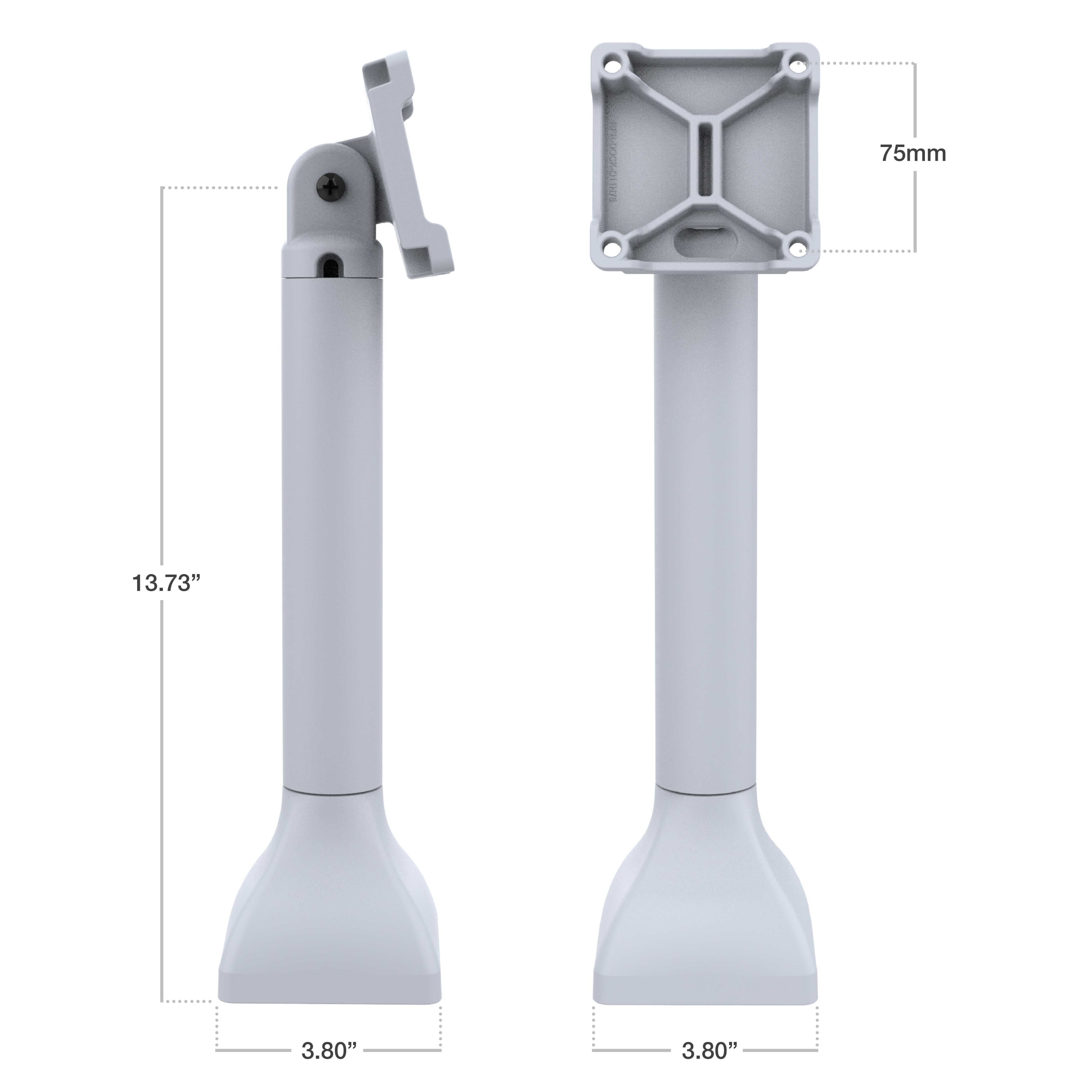 The RAM 35.56cm (14") Pedestal Mount with 75mm VESA & Cable Routing - Gray (RAP-D11H-14-V75-GRY) is a free-standing, 14-inch pedestal that allows you to mount any RAM powered dock or passive holder to create a workstation that maintains the mobility of your tablet. Designed for flexibility and stability, this solution features a 180-degree swivel base and 180-degree device tilt, allowing for optimal viewing, positioning, and screen-sharing with co-workers or customers. Ideal for retail, hospitality, food service, and other point-of-sale or customer-interaction environments, this mount supports VESA 75mm pattern for broad device compatibility alongside RAM docks and holders. This mount features cut-outs for cable management and routing from devices, down through the pedestal, and out of the bottom for a clean workspace. The drill-down base ensures a secure, fixed installationmaking it perfect for high-traffic or semi-permanent setups. Made in a light gray color, the mount blends seamlessly into clean, modern, and aesthetic environments where subtlety and professional appearance matter.