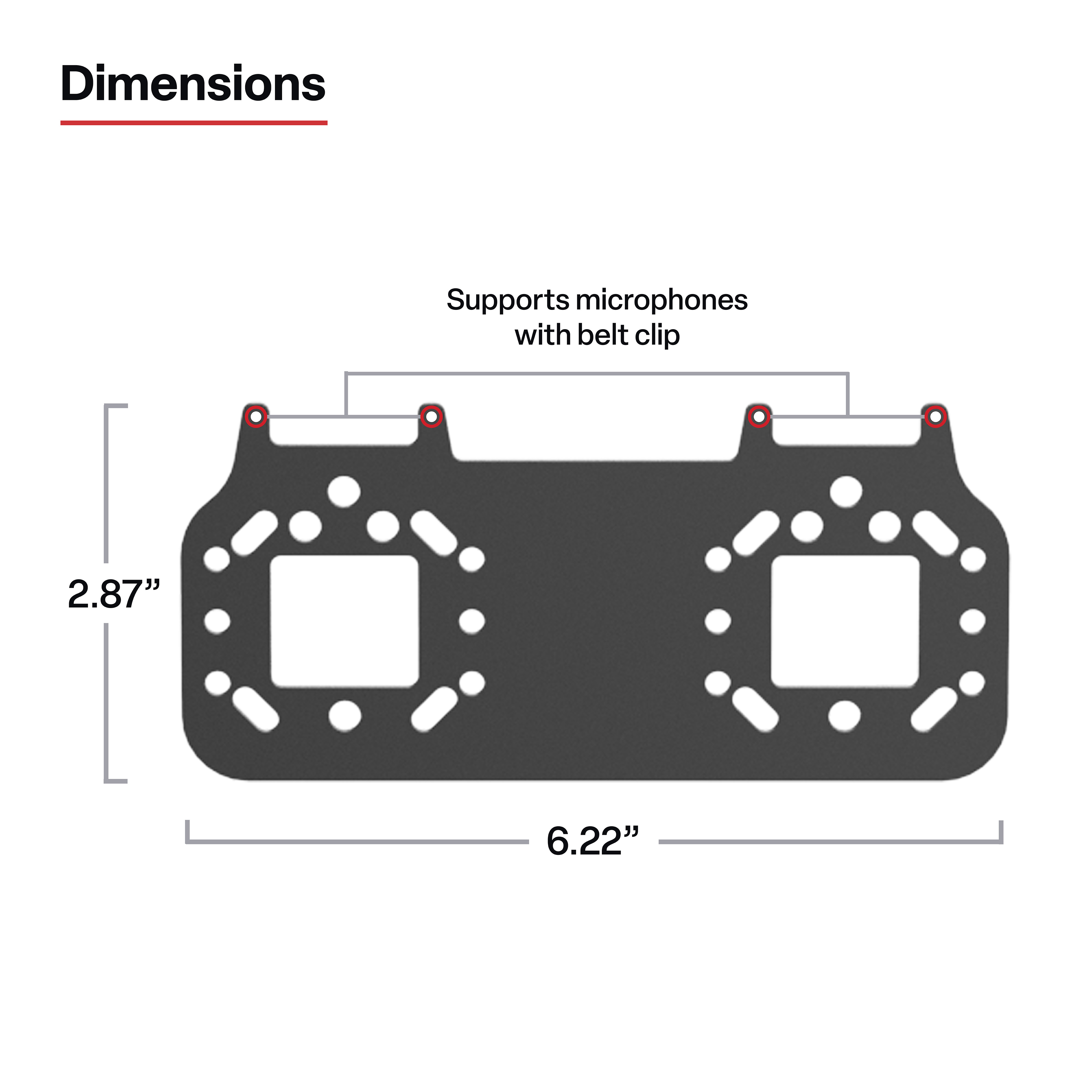 4-Hole AMPS: 3.00 cm (1.181") X 3.80 cm (1.496") 2-Hole AMPS 4.86cm (1.912") Mic Mounting Plate Hole Pattern