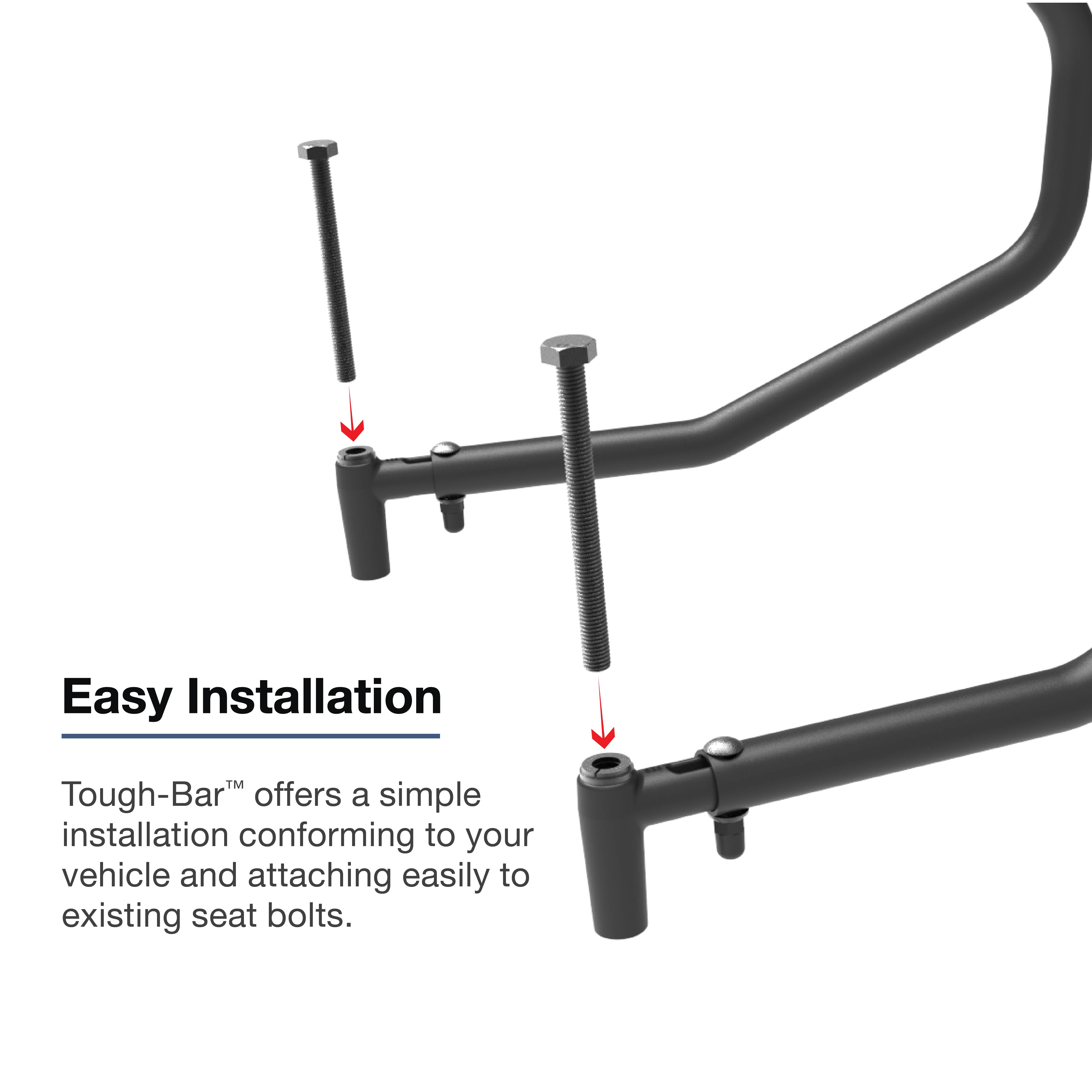 • Secures to the driver seat bolt, passenger seat bolt, and center dash for maximum stability and minimal vibration
